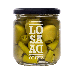 Aceitunas sevillanas con piparra vasca e infusión de guindilla. Aceitunas en aderezo tradicional. Fermentadas durante 3 meses. Envase de vidrio con tapa metálica, de 345g.